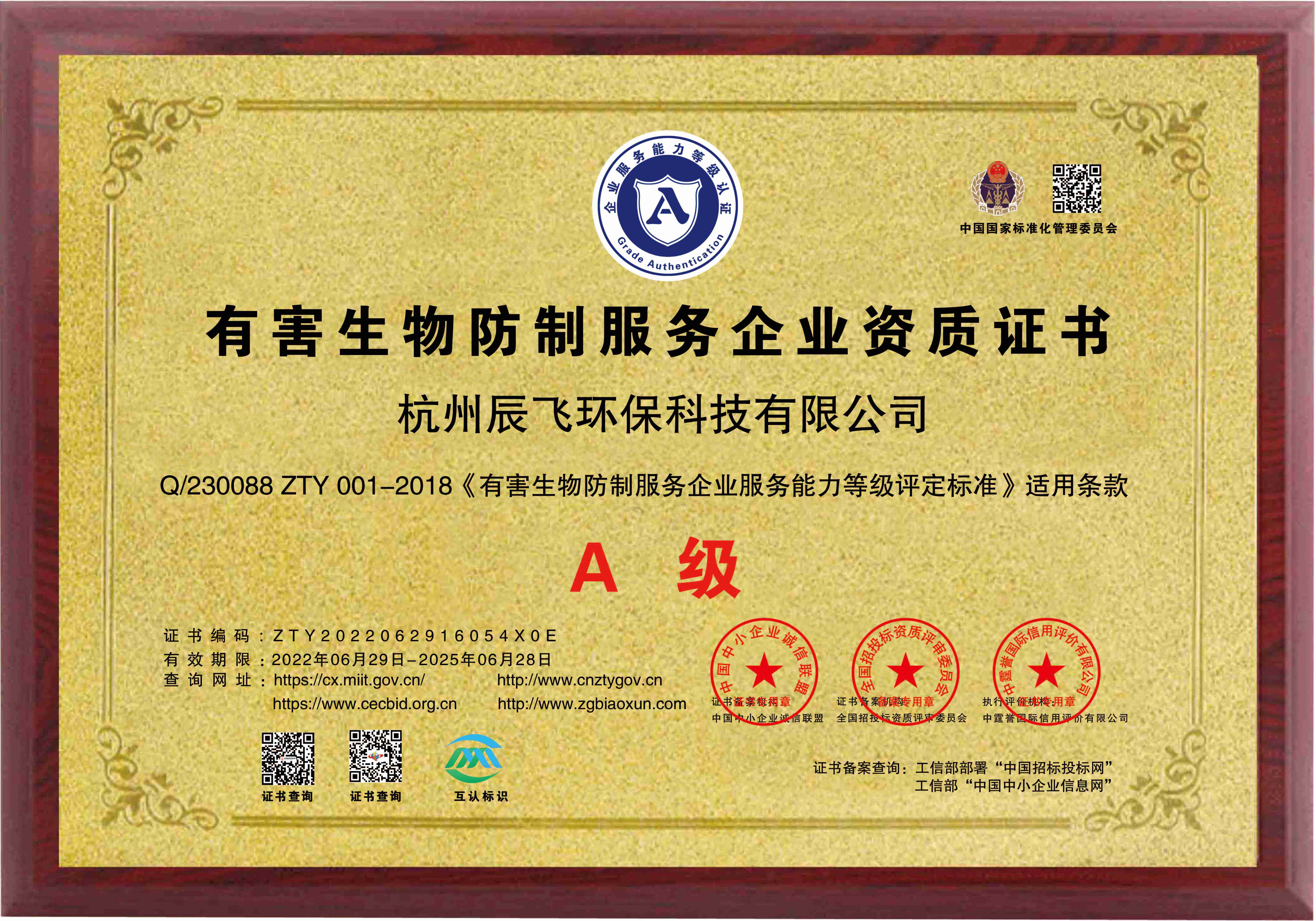 有害生物防制服務企業A級